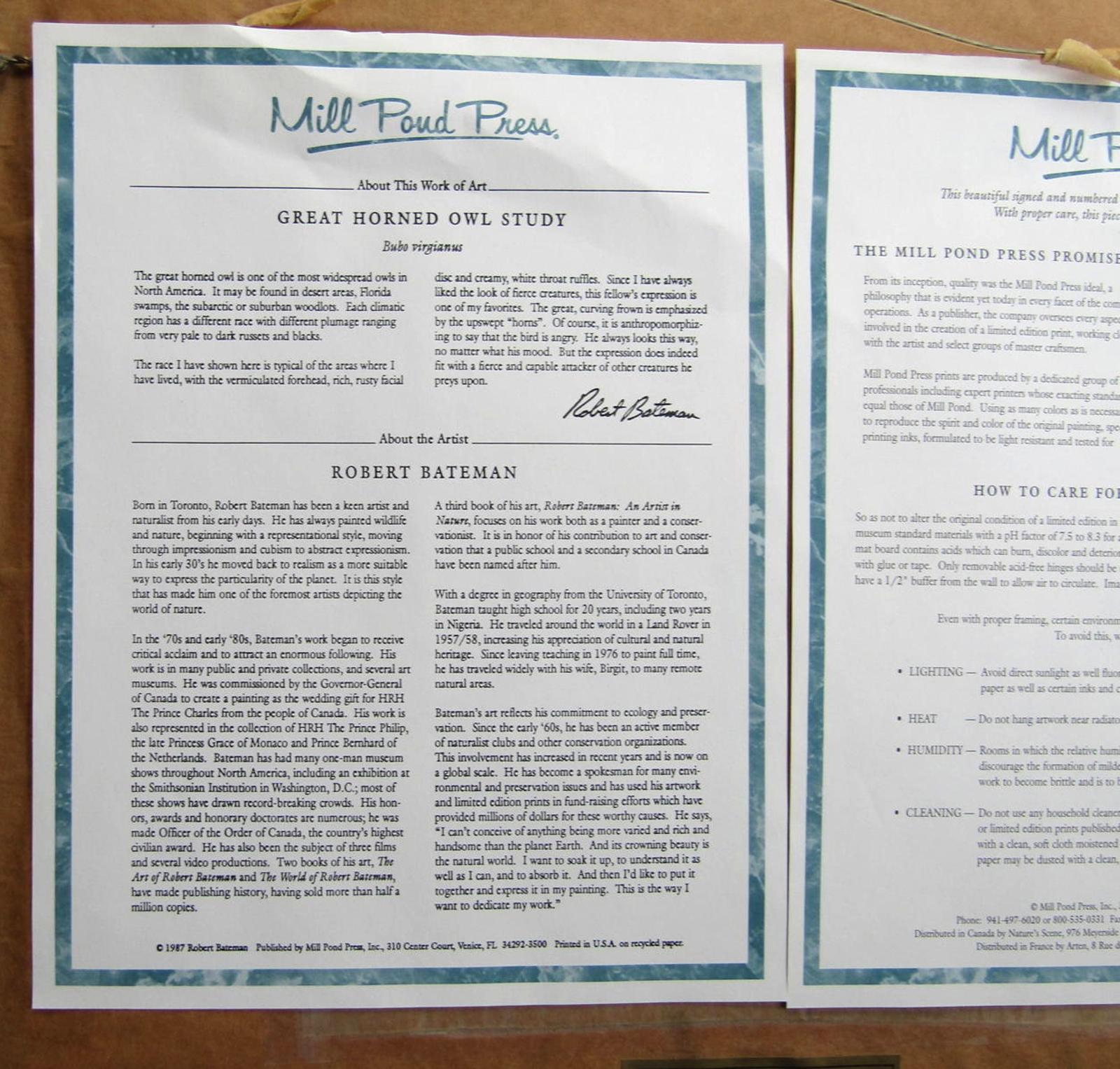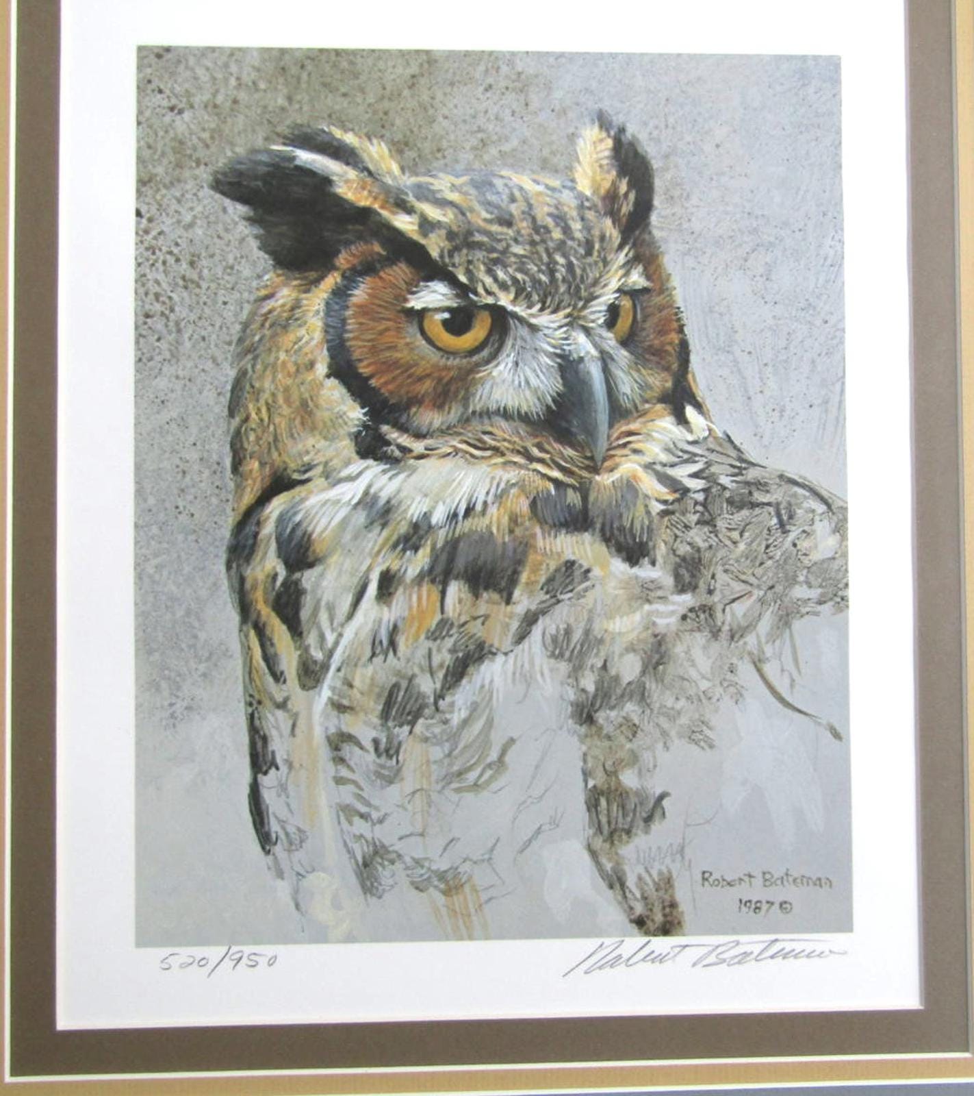 Beautiful limited edition print by renowned artist Robert Bateman featuring a detailed owl.