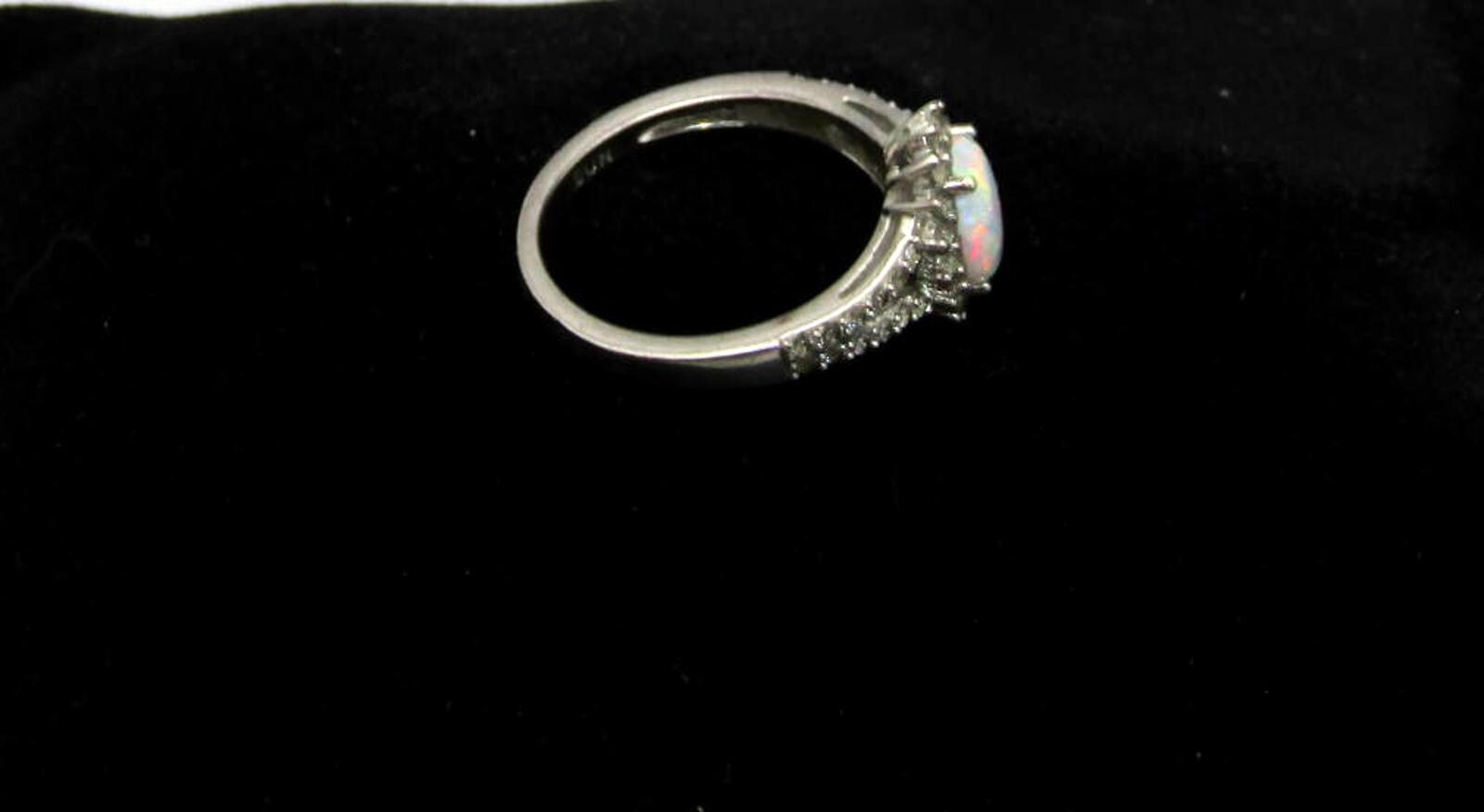Perfect condition. Size 7. Can be resized to fit your finger by any jeweler. The Opal appears to be over a carat and lots of color. No diamonds are missing.