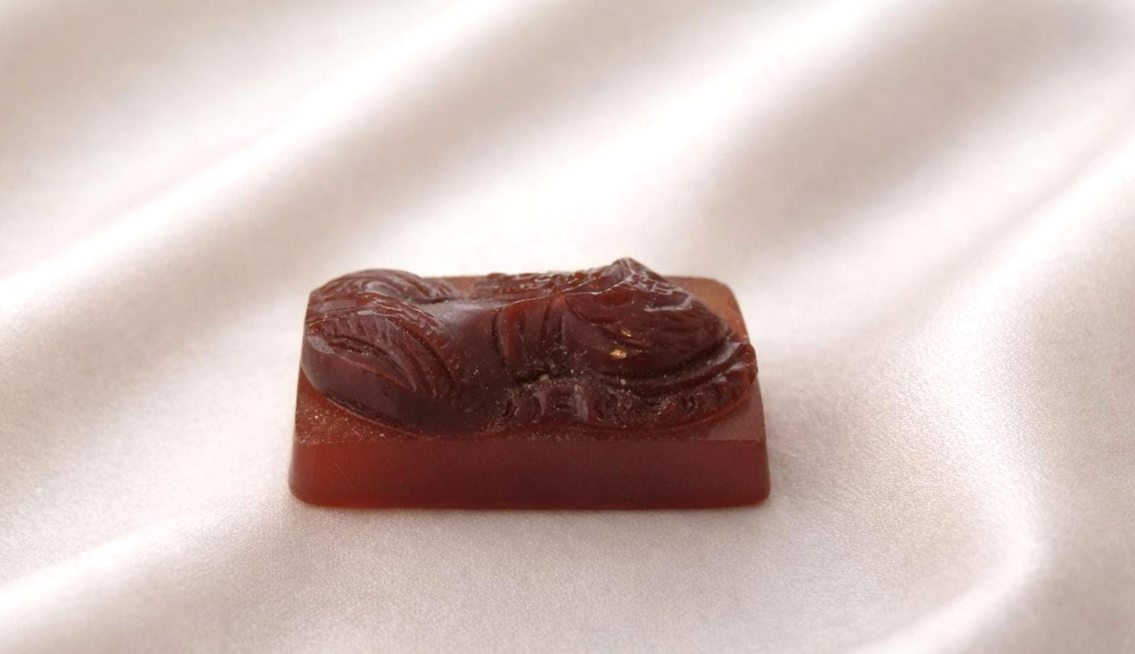 Material: Crafted from carnelian agate (a reddish-brown gemstone).