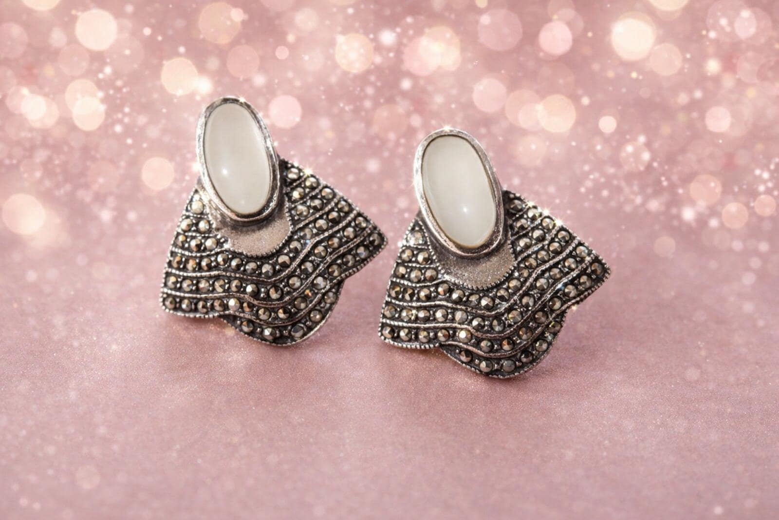 Materials: High-quality 925 sterling silver, genuine mother of pearl inlay, and faceted marcasite gemstones.